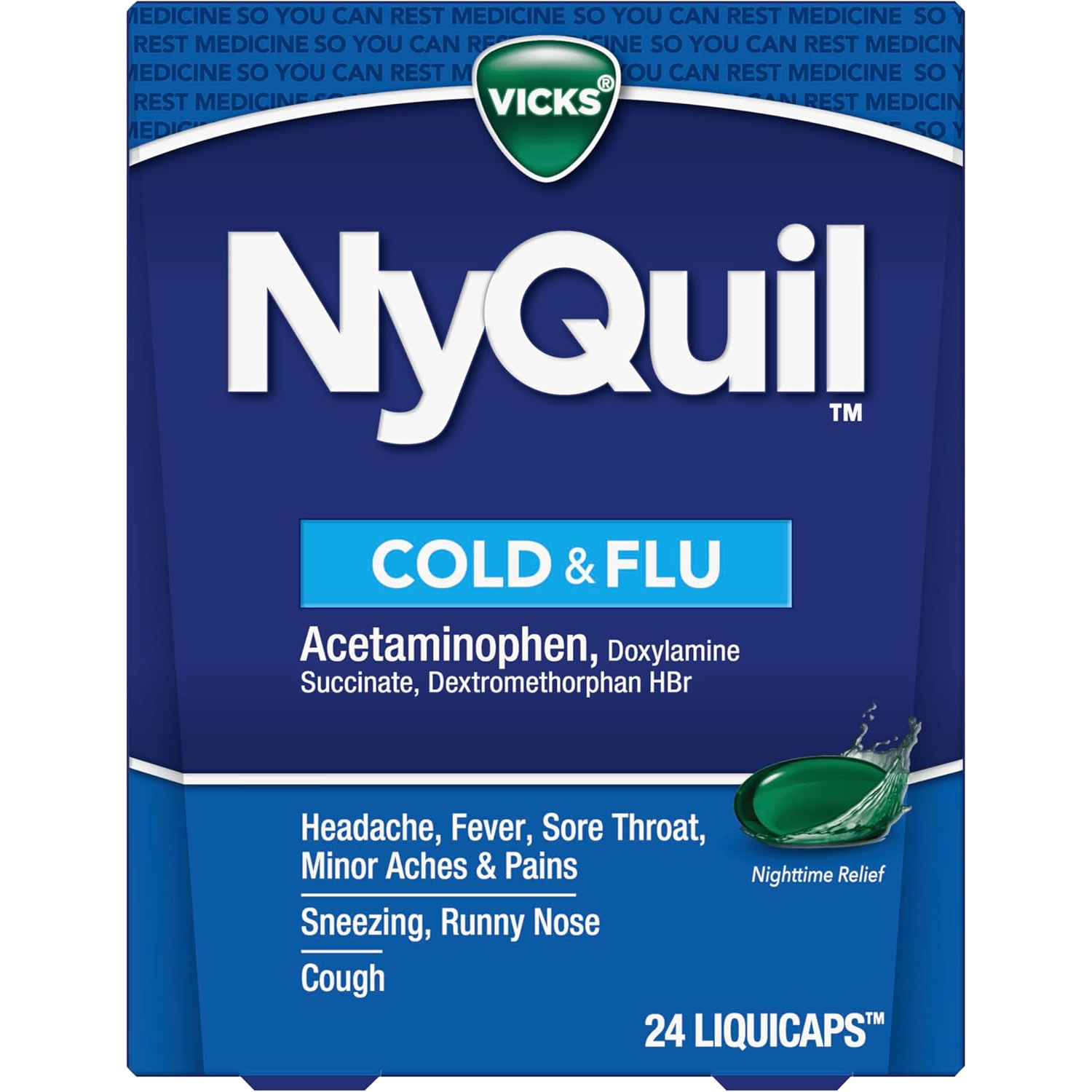 - EFFECTIVE NIGHTTIME COLD & FLU SYMPTOM RELIEF; NyQuil Cold & Flu Liquicaps temporarily relieves common cold & flu symptoms so you can get the rest you need