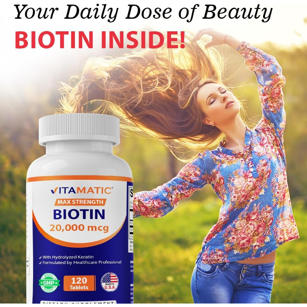 모발, 피부, 손톱 건강 지원: 모발이 가늘어지거나 손톱이 잘 부러지는 등 비오틴 결핍 증상을 가진 사람들에게 도움을 줄 수 있습니다. 케라틴 생성에 중요한 역할을 합니다.