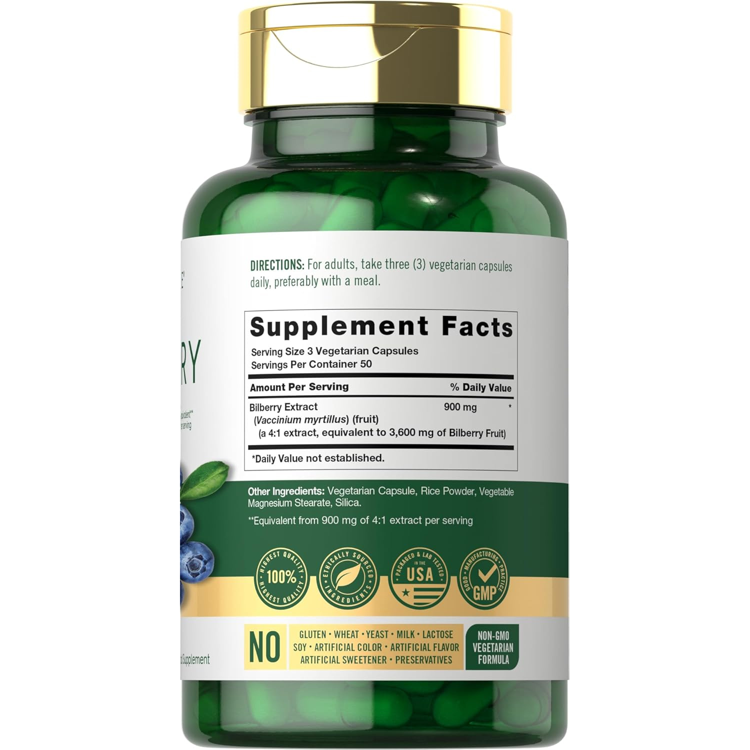- One bottle of Bilberry Extract 2400 mg 200 Vegetarian Capsules